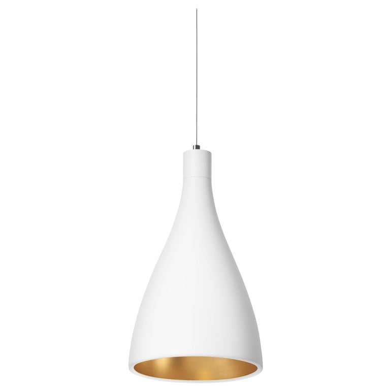 Narrow Swell String Pendant Light In White And Brass By Pablo