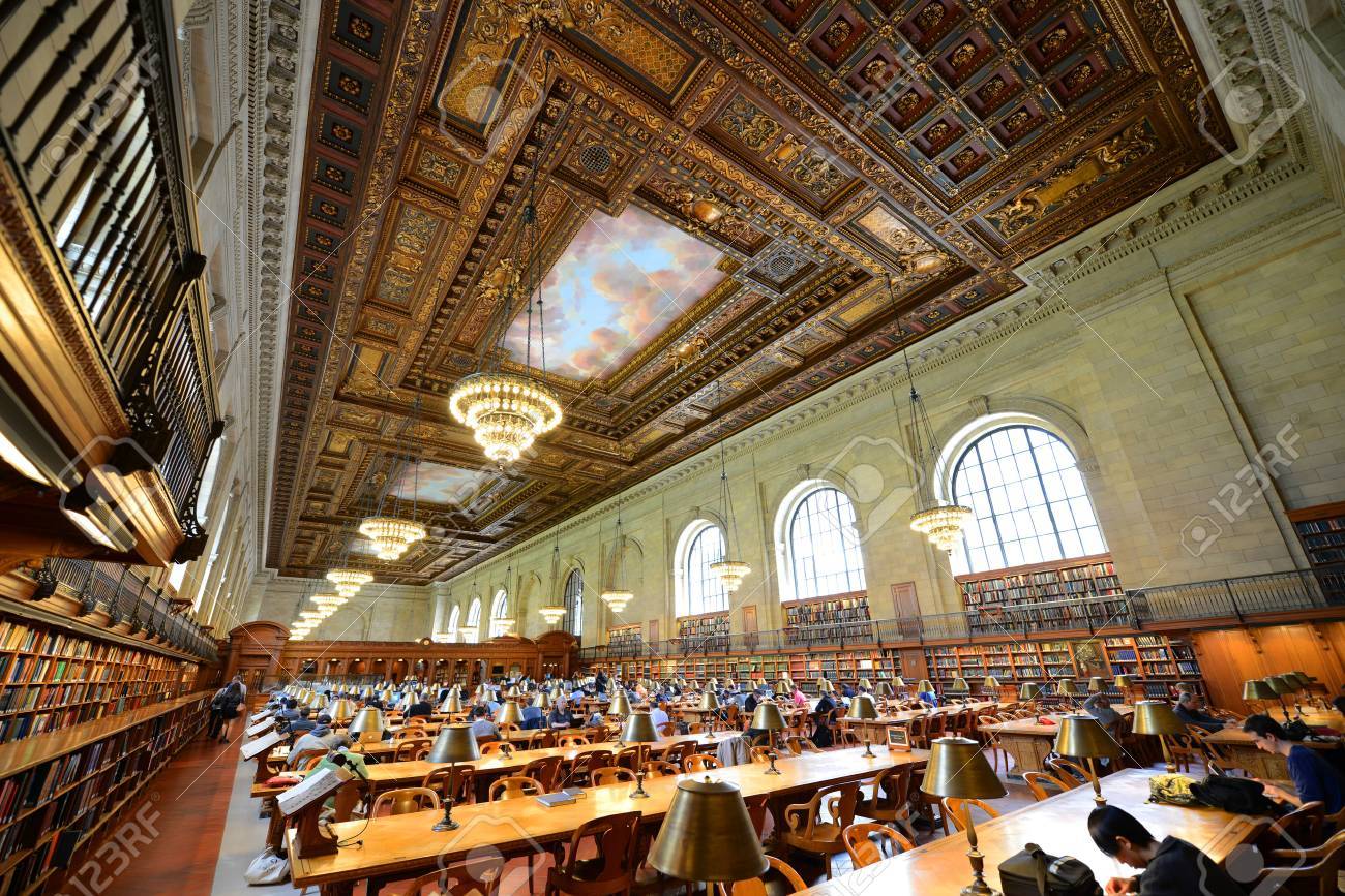 New york public library rose main reading room. On may 30 2014 a piece of ceiling fell inside the new york public library rose reading room. One of new york citys most iconic locations the majestic rose main reading room measures 78 feet by 297 feetroughly the length of two city blockswith 52 foot tall ceilings displaying murals of vibrant skies and billowing clouds. The stunning landmark space was forced to close for about two weeks that turned into two years.