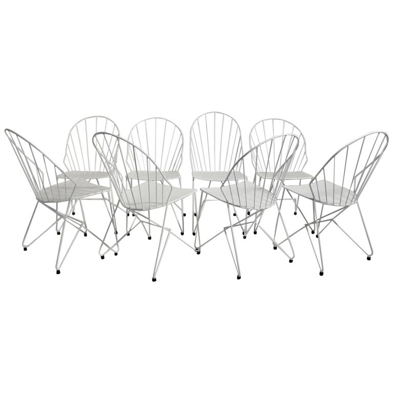 Mid Century Modern White Metal Vintage Garden Chairs Auersperg By Sonett