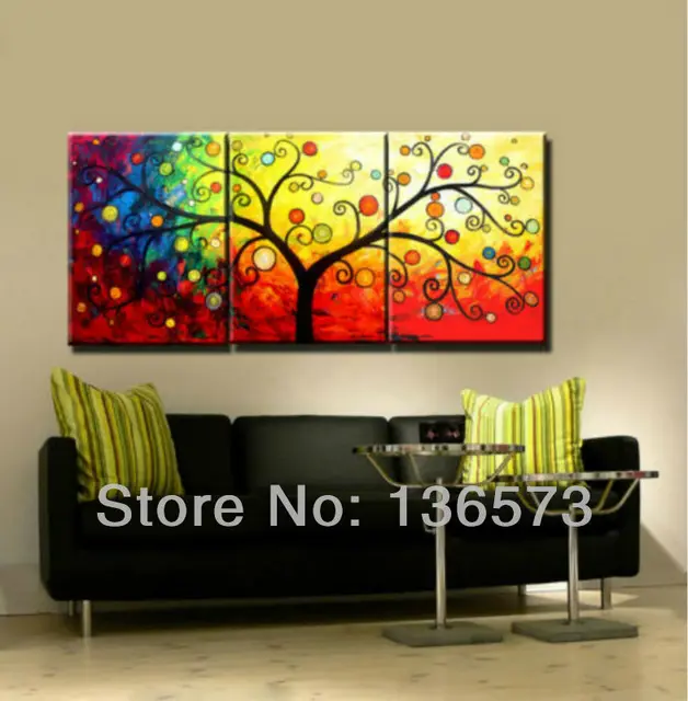 Handmade 3 Piece Canvas Wall Art Sets Money Tree Oil Painting