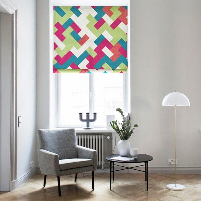 Glorious Colors Modern Window Pattern Colorful Roman Shade Geometric Roman Shade Linen Curtains Custom Roman Shade Living Room Decor