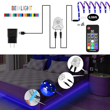 Lehou Motion Bed Light Led Strip 6 56ft Motion Sensor Night Light Bedside Lamp Illumination Rgb Color Include Warm Color Auto Shut Off Timer For