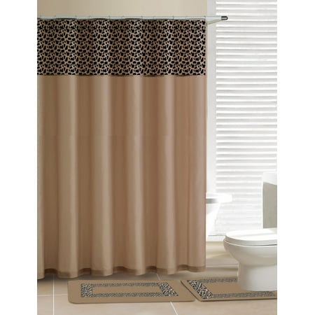 Home Dynamix Designer Bath Shower Curtain And Bath Rug Set Db15l 150 Leopard Beige 15 Piece Bath Set
