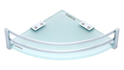 Embros Brass Wall Mounted Bathroom Corner Shelves With Frosted And Toughen Glass Chrome 8 X 8 Elite
