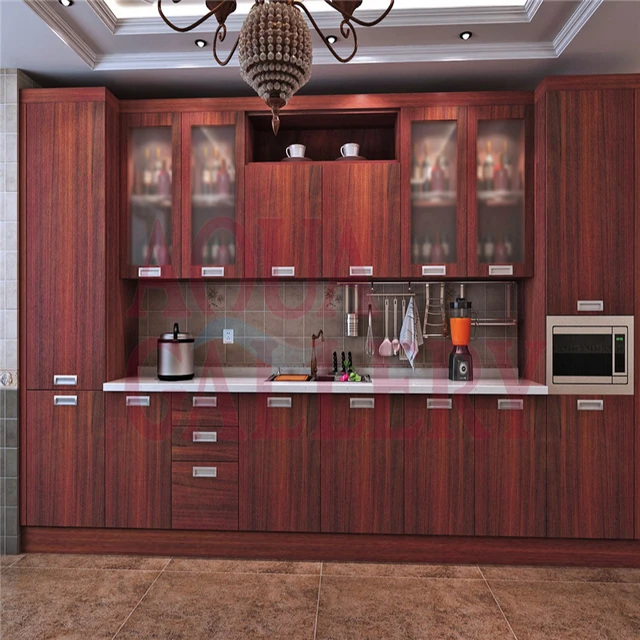 Newest Luxury Vintage Burgundy Solid Wood American Style Kitchen