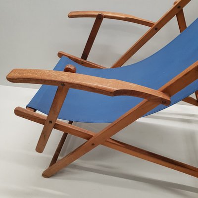Vintage Wooden Folding Beach Chairs With Armrests 1950s Set Of 2