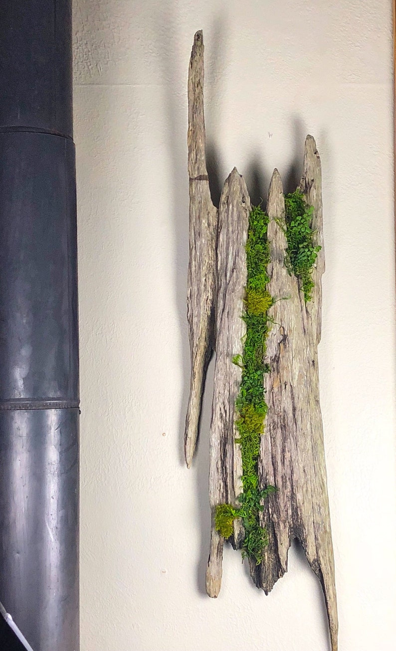 Driftwood Wall Decor Natural Wood Art Wooden Sculpture With Moss Ferns Unique Wall Art One Of A Kind Art Rustic Home Decor