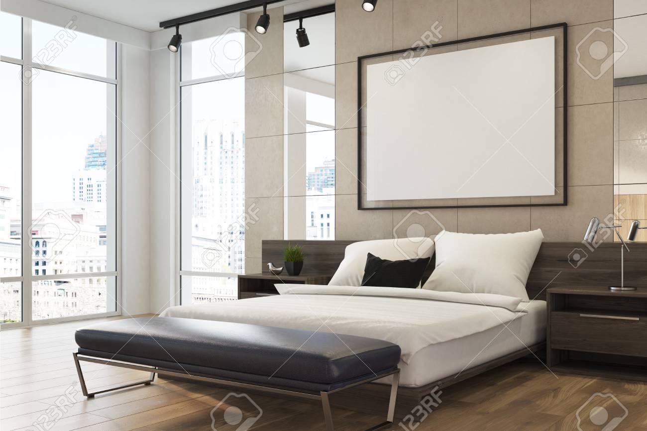 Beige Loft Bedroom Interior Corner With A Double Bed Several