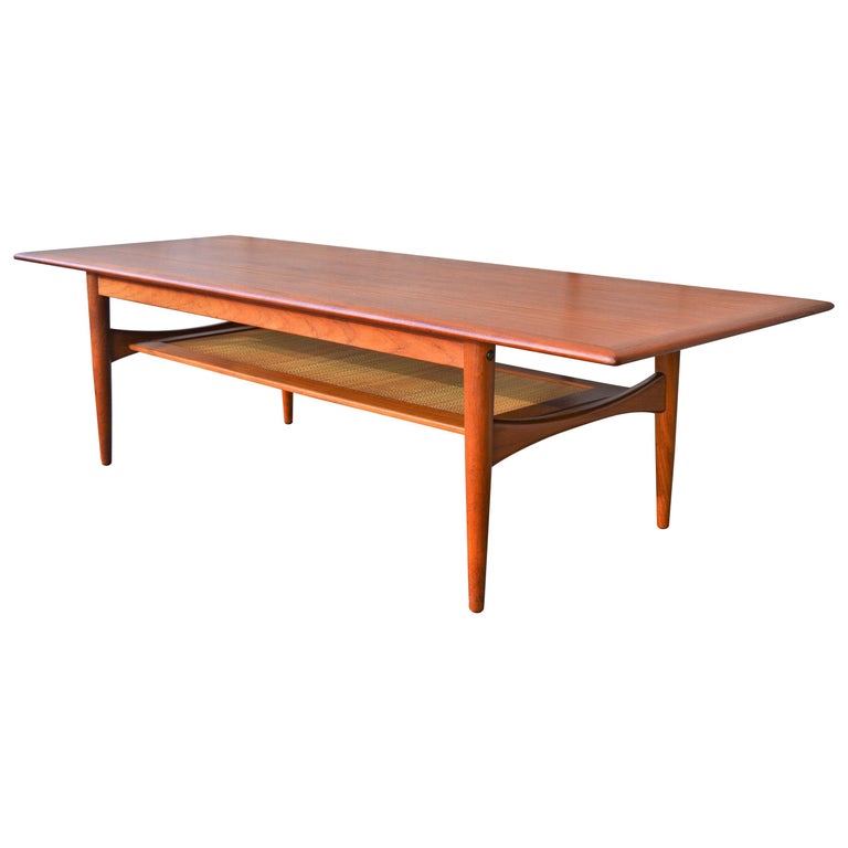 Danish Modern Teak Knife Edge Minimalist Coffee Table With Woven