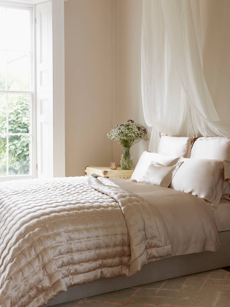 Selected from the best of raw mulberry silk the 25 momme silk excels in all areas from fiber strength to light refraction uniformness. Bright yet delicate blush pink petals dress your bed with vintage charm.