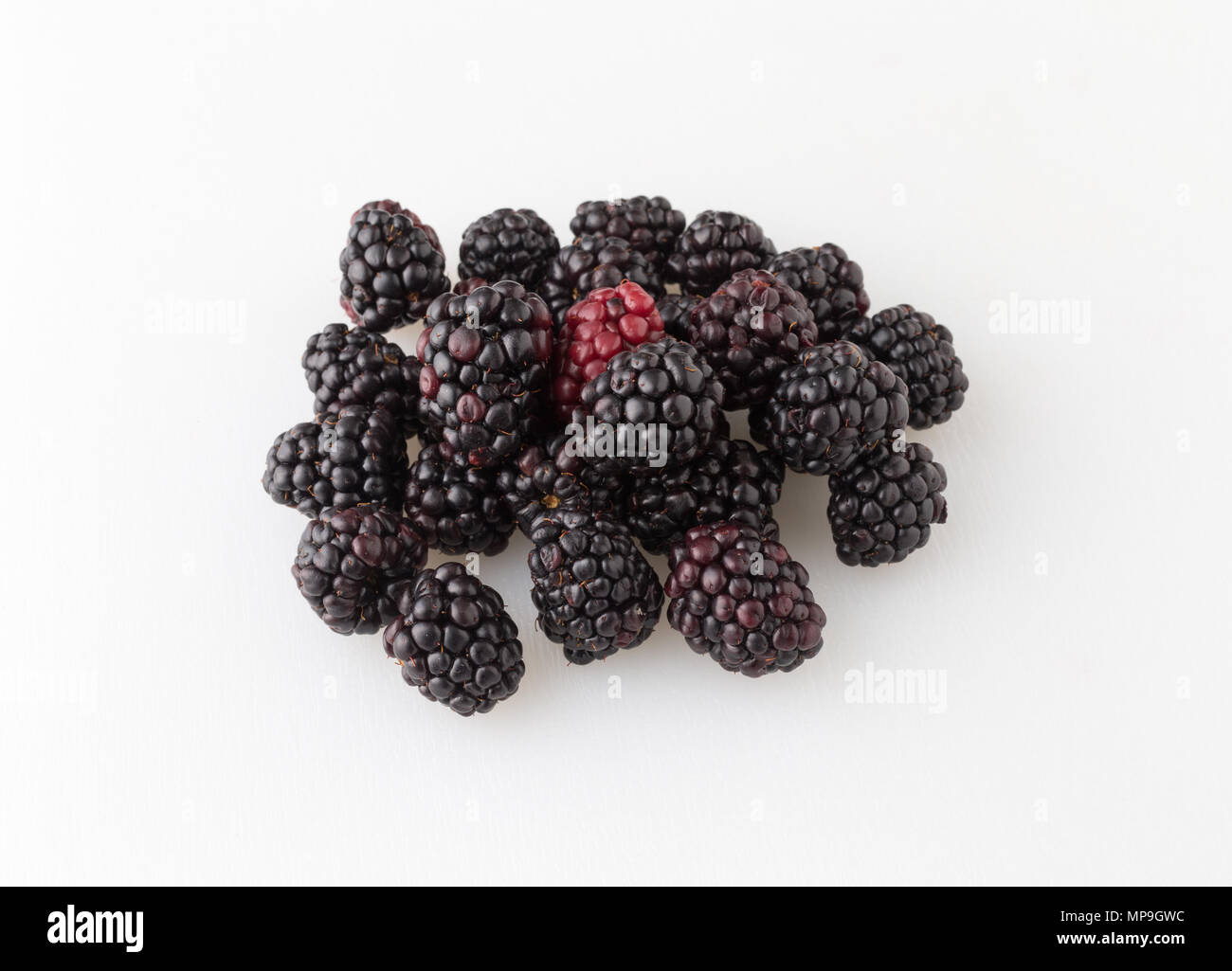A Small Pile Of Ripe Blackberries On A White Plastic Cutting Board