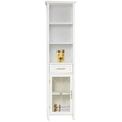 Amazon Com Tall Linen Tower Bathroom Cabinet Single Glass Paneled