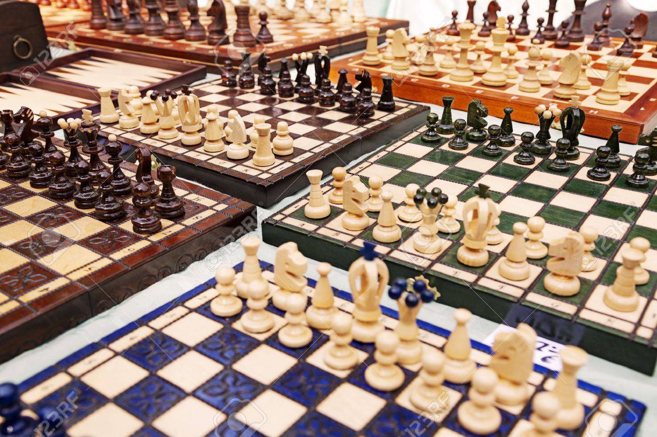A Large Amount Of Homemade Chess Boards Displayed For Sale On