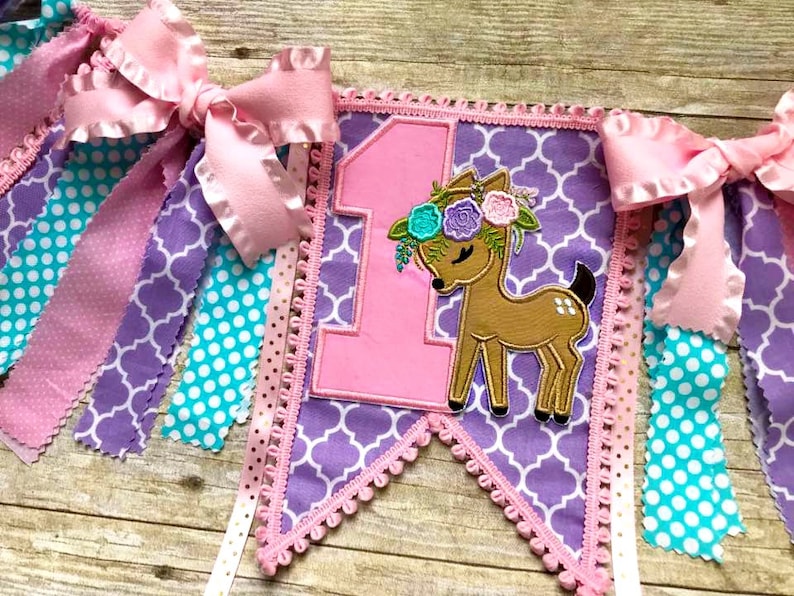 Floral Deer 1st Birthday High Chair Banner 1st Highchair Banner Woodland High Chair Banner Deer 1st First Birthday Woodland Deer