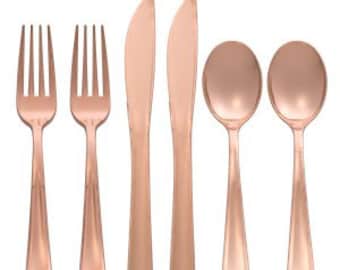 120 Plastic Silverware Set Rose Gold Cutlery Disposable 40 Forks