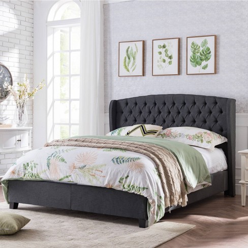 Alberta Upholstered Bed Set Queen Dark Gray Christopher Knight Home