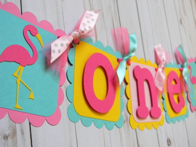 Pink Flamingo Birthday Party High Chair Mini Banner Flamingo Party