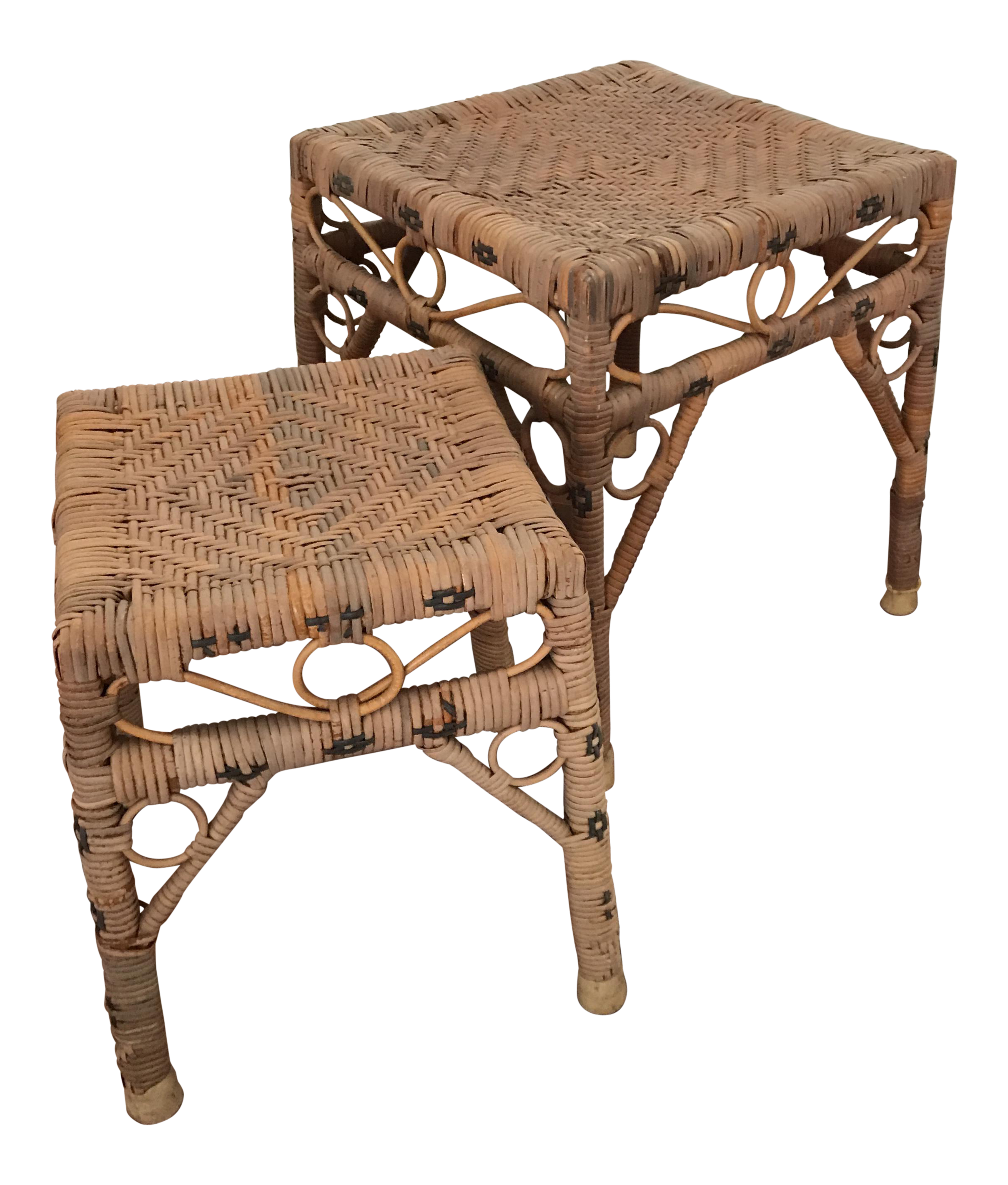 Vintage Hand Woven Rattan Accent Tables A Pair Chairish