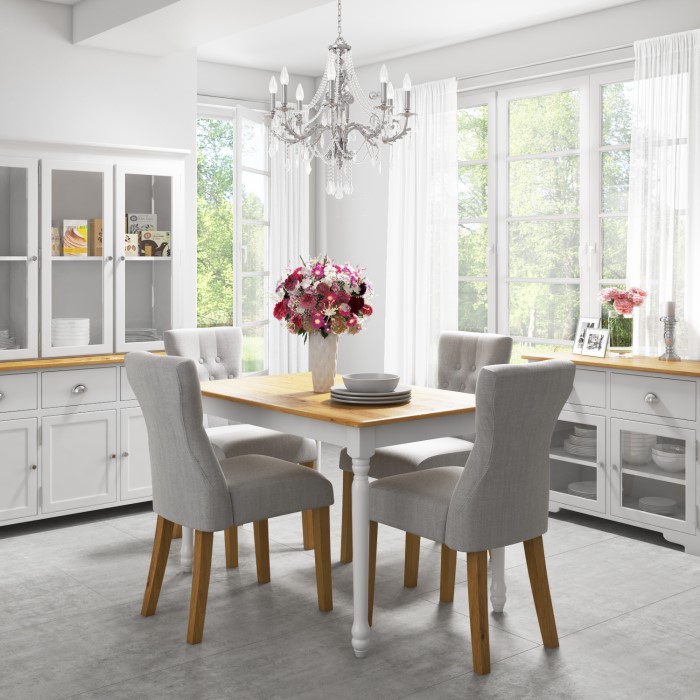 Rhode Island Kitchen Dining Table With 4 Dining Chairs In White