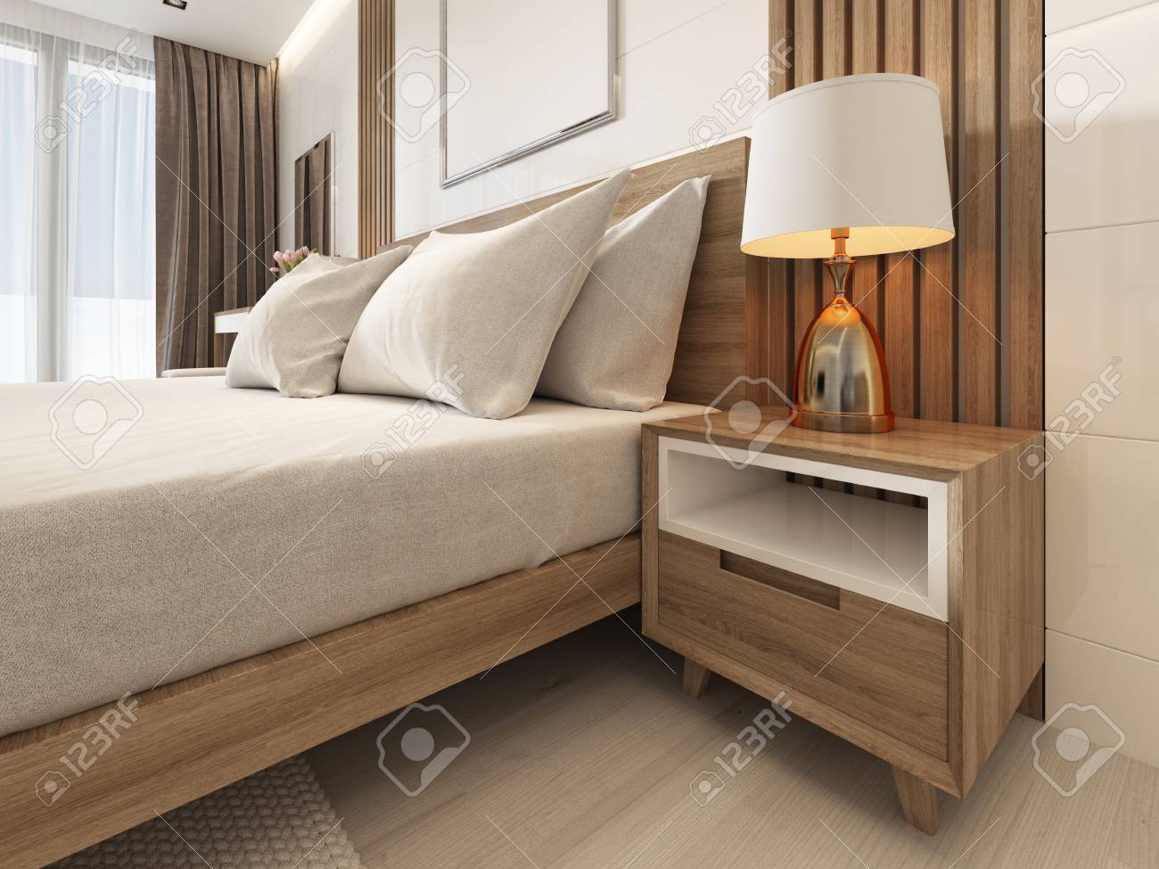 Bedside Table With A Lamp In Scandinavian Bedroom 3d Rendering