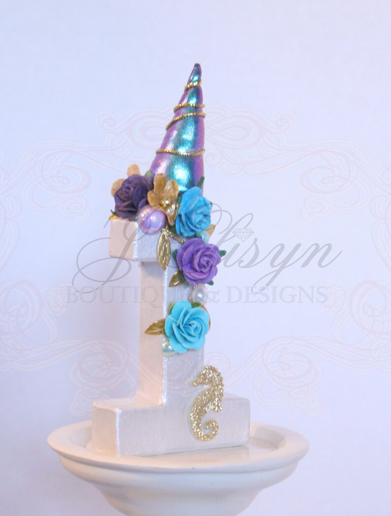 Rts No 1 Unicorn Mermaid Party Decor Aqua Teal Purple Florals Gold Sea Horse Purple Horn First Birthday Number 1 Etter A