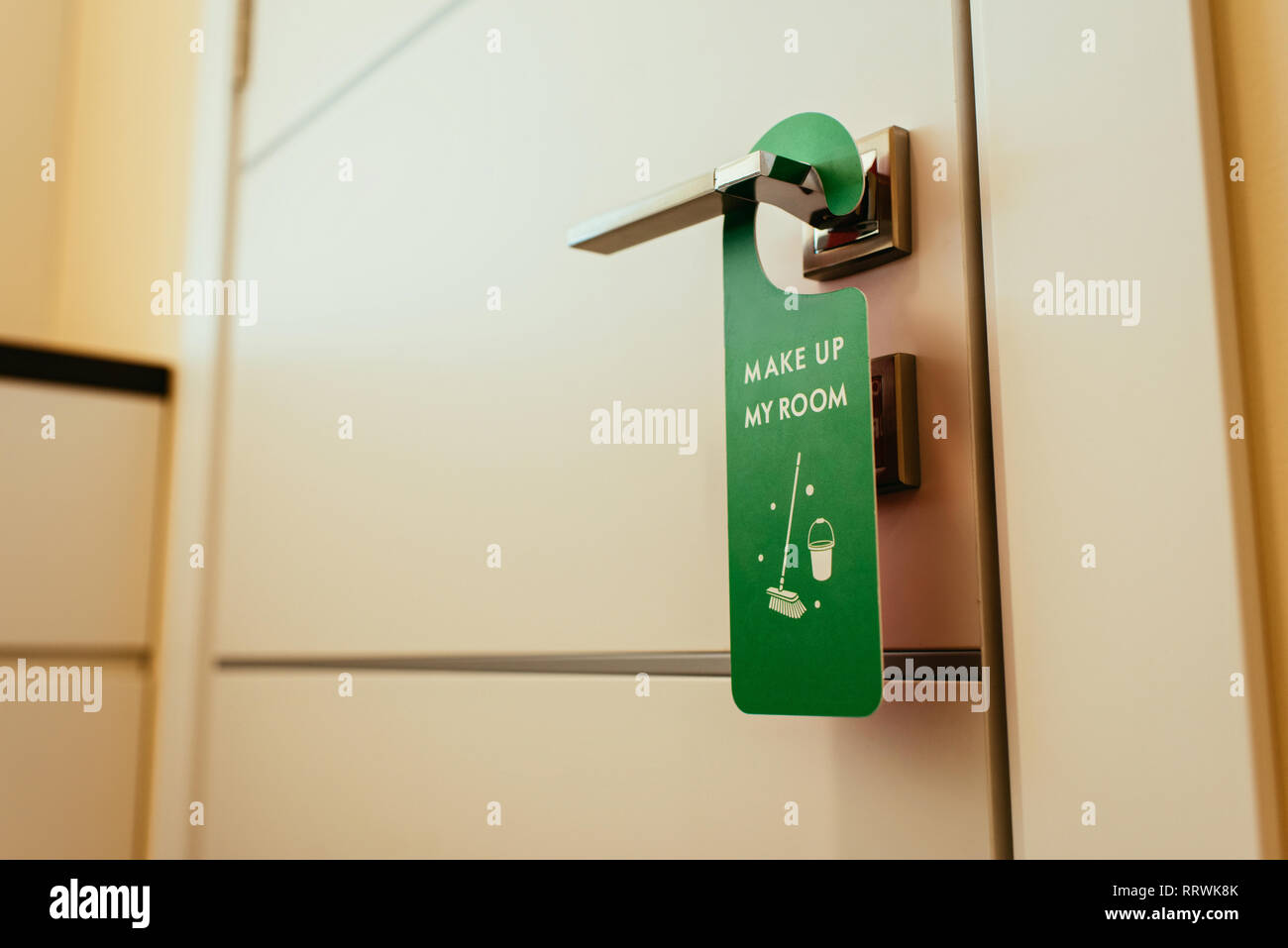 Green Sign With Make Up My Room Lettering On Door Handle Cleanup