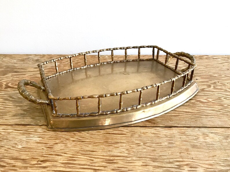 Brass Bamboo Vanity Tray Faux Bamboo Chinoiserie Golden Brass Platter Liquor Bottle Barware Tray Brass Serving Tray