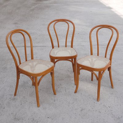 Vintage Bentwood Rattan Dining Chairs Set Of 3