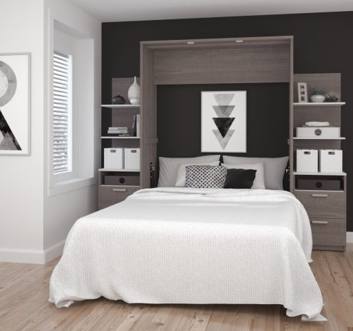 Cielo By Elite Bark Gray And White 98 Full Wall Bed Kit From Bestar