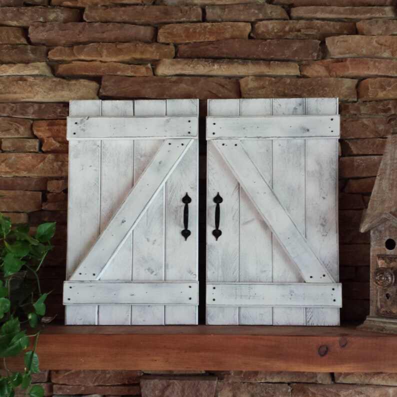 Rustic Barn Doors Set Of 2 Rustic Gallery Wall Mountain House Decor Wood Shutters Mini Barn Doors Farmhouse Chic Modern Farmhouse
