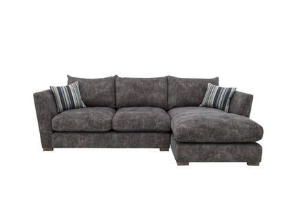 Chester Grey Fabric 3 Seater Chaise Sofa Dark Stained Feet