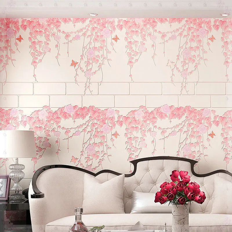 Rose Flower Butterfly Leaf Wallpaper 4 Colors Wedding Room Wall