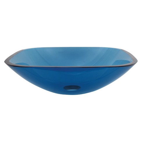 Tempered Glass Square Blue Bathroom Vessel Sink Kingston Brass