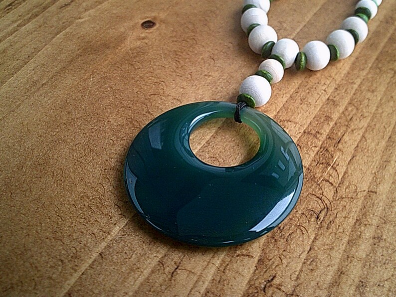 Green Agate Pendant Surfer Necklace Wooden Bead Necklace Summer Beach Jewellery Urban Jewelry Positive Energy Unisex Necklace Uk