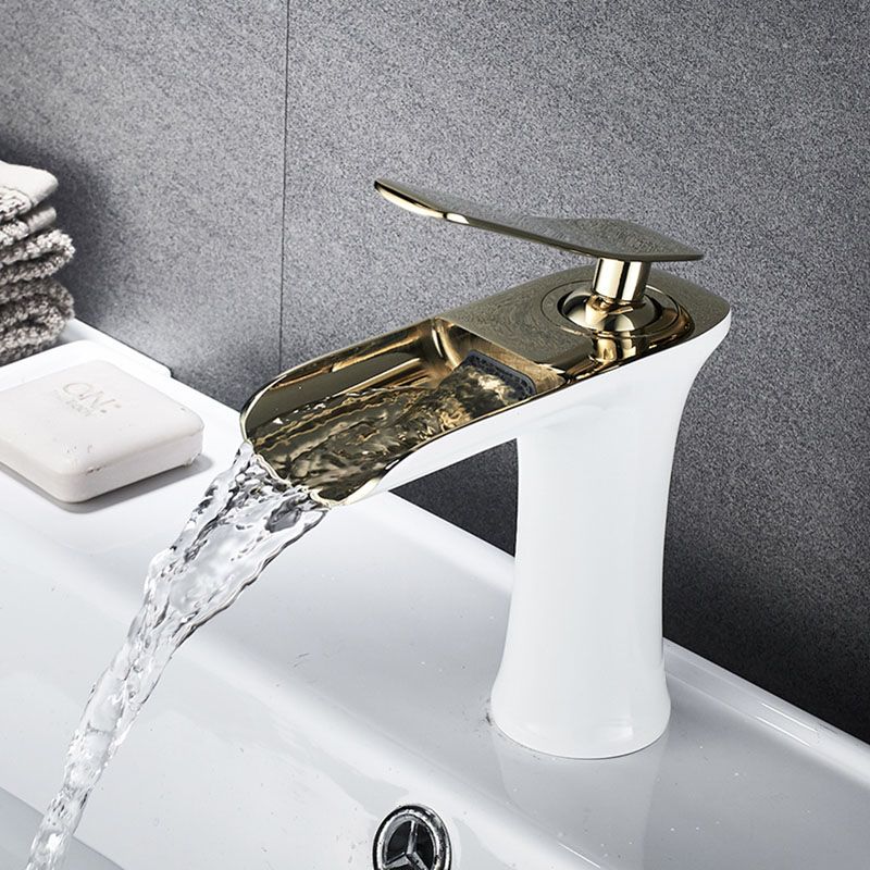 2019 Basin Sink Faucet Golden White Chrome Single Handle Waterfall