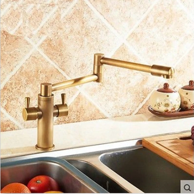 Deck Mounted Foldable Antique Brass Kitchen Sink Faucet Hot And Cold