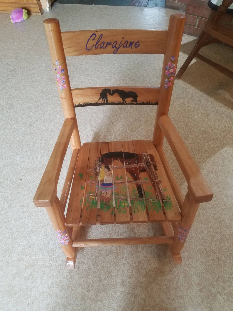Child Solid Wood Rocking Chair Hand Painted Custom Design Personalized