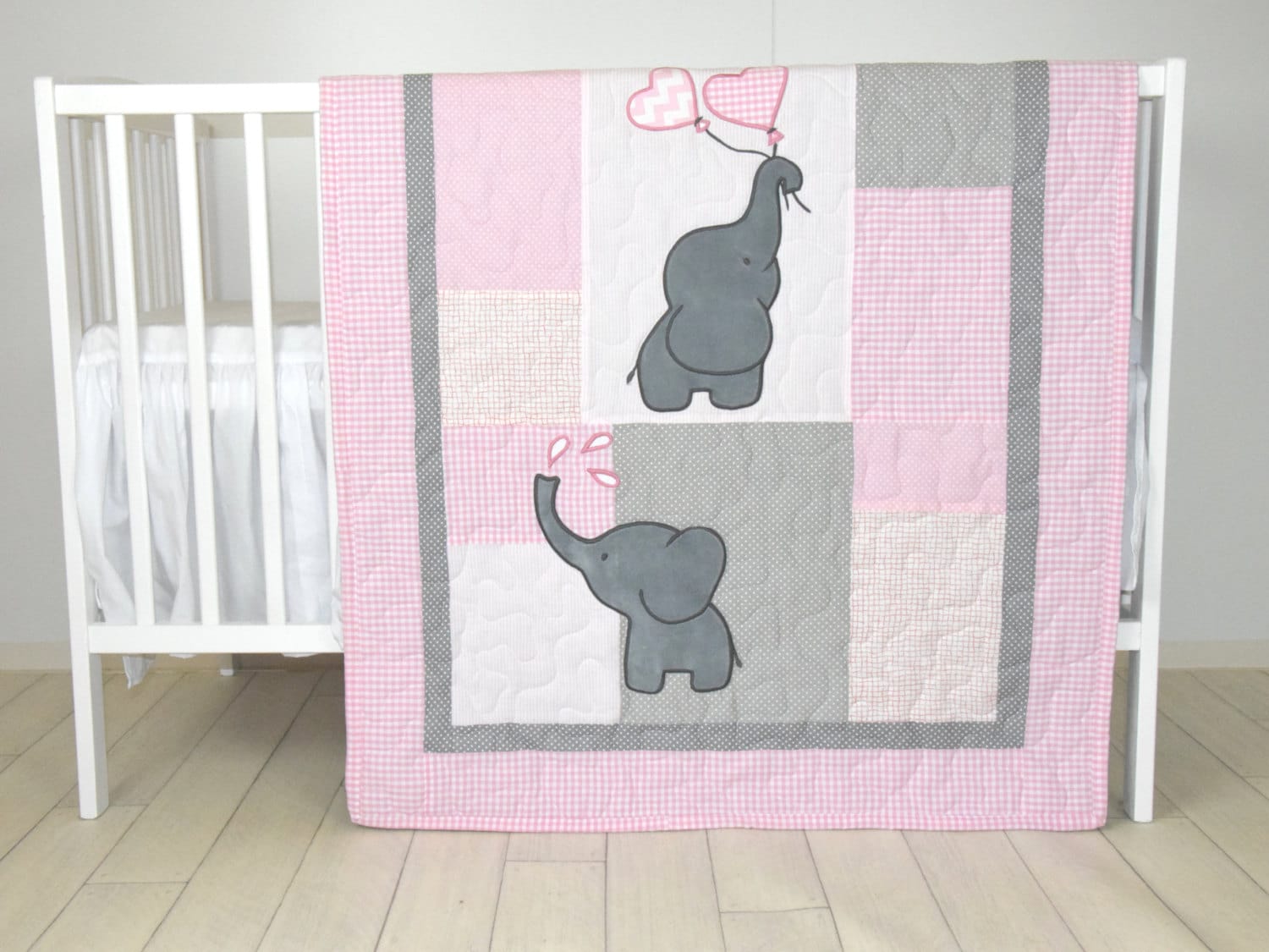 Baby Girl Quilt Elephant Blanket Pink Gray Crib Bedding Etsy
