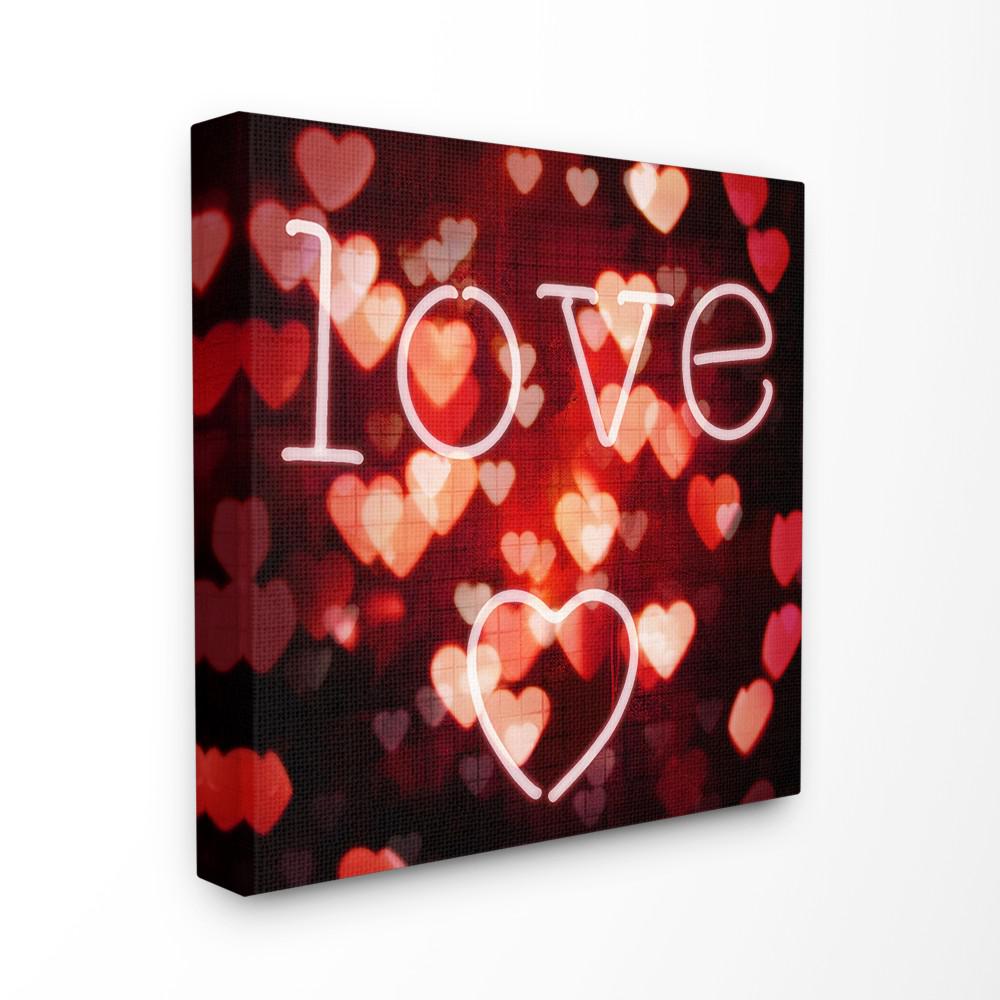 17 In X 17 In Pink Red And Black Neon Love Hearts Lights Bokeh Photography By Artist Kate Carrigan Canvas Wall Art