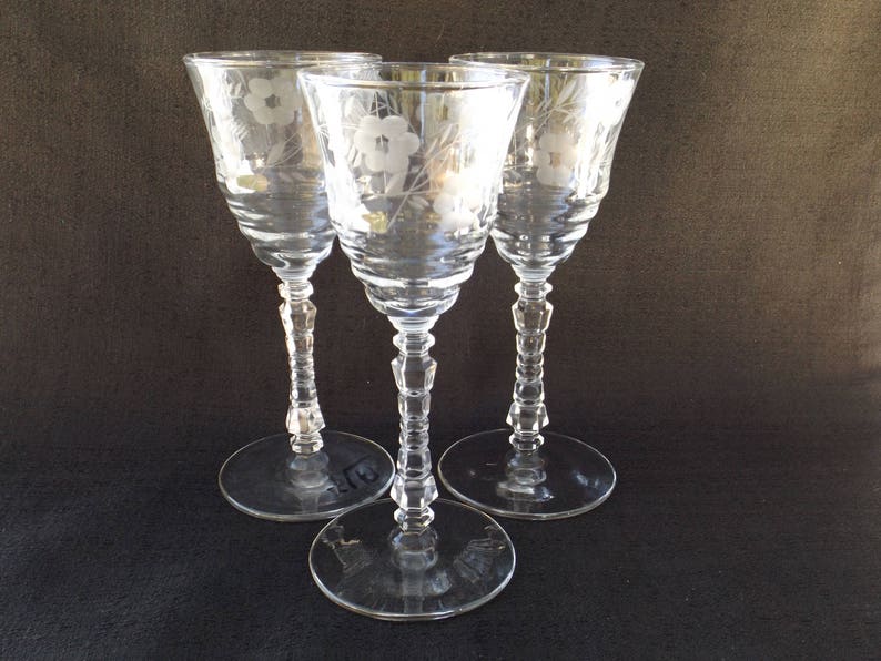 Rock Sharpe Set Of 3 Wine Glasses Stem 3005 Vintage 1930s Etsy