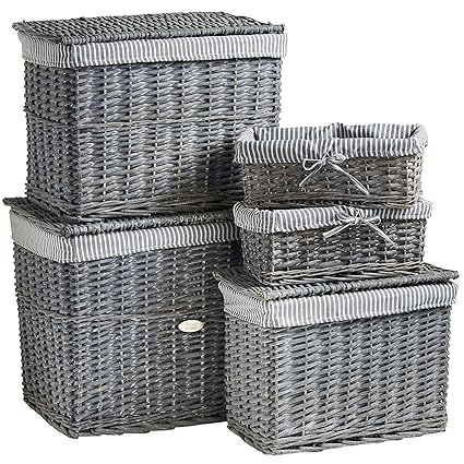 Vonhaus Set Of 5 Natural Wicker Storage Baskets And Trunks Display Hamper And Storage For Bathroom Living Room Kitchen Or Lounge Decorative Gift