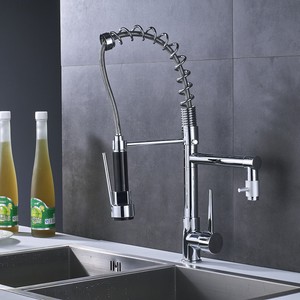 Deck Mounted Nickle Brushed Brass Kitchen Faucet Pull Out Sprayer Vessel Bar Sink Faucet Single Handle Hole Mixer Tap