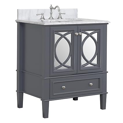 Olivia 30 Inch Bathroom Vanity Carrara Charcoal Gray Includes Italian Carrara Marble Countertop A Charcoal Gray Cabinet Soft Close Drawers And A