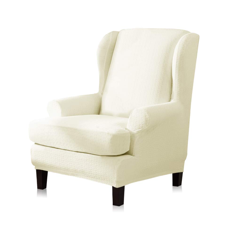 Tikami Wingback Chair Cover Slipcover 2 Piece Stretch Wing Chair Cover Armchair Slipcovers Sofa Cover Furniture Protector Pale Yellow