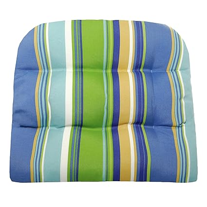 Large Outdoor Patio Chair Cushion No Ties Cabana Stripe Indoor Outdoor Mildew Resistant Fade Resistant Reversible Tufted U Shaped Chair Pad