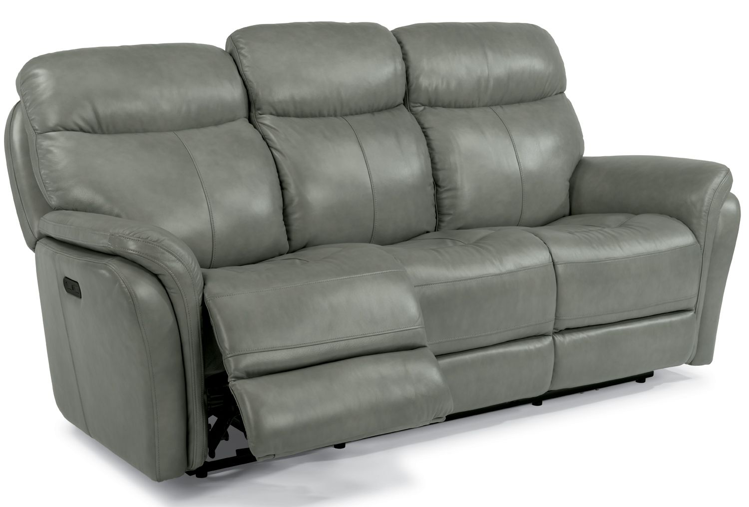 Flexsteel Zoey Light Grey Leather Power Reclining Sofa With Power Headrests