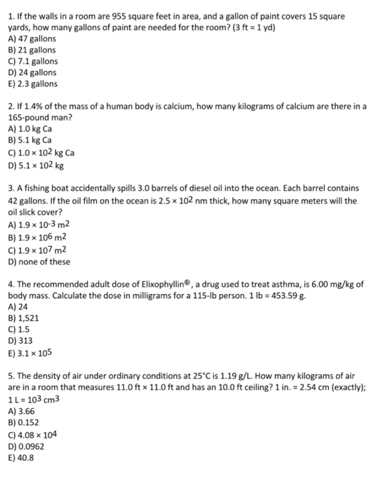 Solved 1 If The Walls In A Room Are 955 Square Feet In A