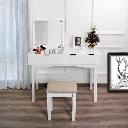 This time besides keeping the wood and ultra quality materials we bring you an elegant dressing table and makeup table set with 3 mirrors 4 organizational drawers and padded stool. This hollywood esque makeup table. This time besides keeping the wood and ultra quality materials we bring you an elegant dressing table and makeup table set with 3 mirrors 4 organizational drawers and padded stool.