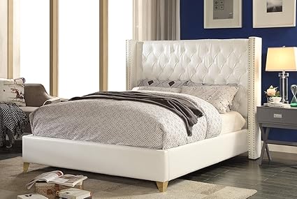 Buy king bed frame products like safavieh chester king bed in black hillsdale southport upholstered king bed in ecru skyline furniture mchugh king bed in zuma feather skyline furniture abbie wingback king bed in linen grey skyline furniture kingsbury tufted linen king bed in slate. Enhance your bedrooms look with the tufted wingback upholstered beddesigned in a traditional style this low profile bed has a strong pine wood construction upholstered in luxurious and soft dense piled polyester velvet. Shop for aurora faux leather crystal tufted nailhead wingback headboard by inspire q bold.