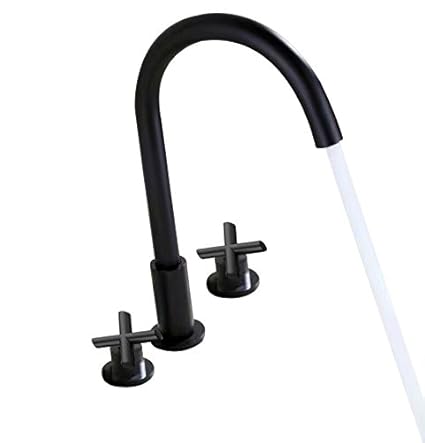 Hongala Modern Bathroom Sink Faucet Matte Black Cross Handle Lavatory Faucets Three Hole Widespread